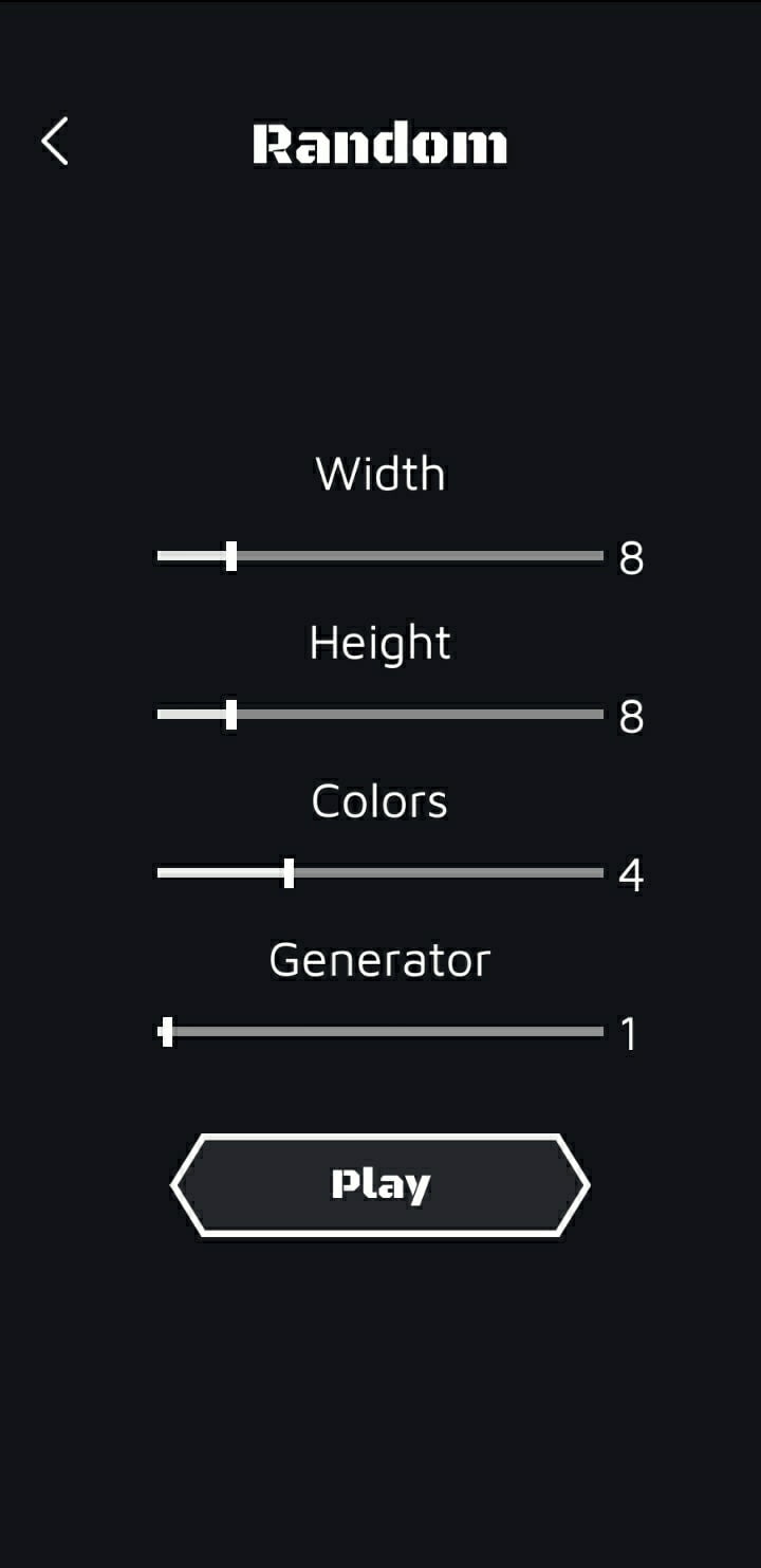 Random: The game randomly generates a board with a defined number of squares and colors.