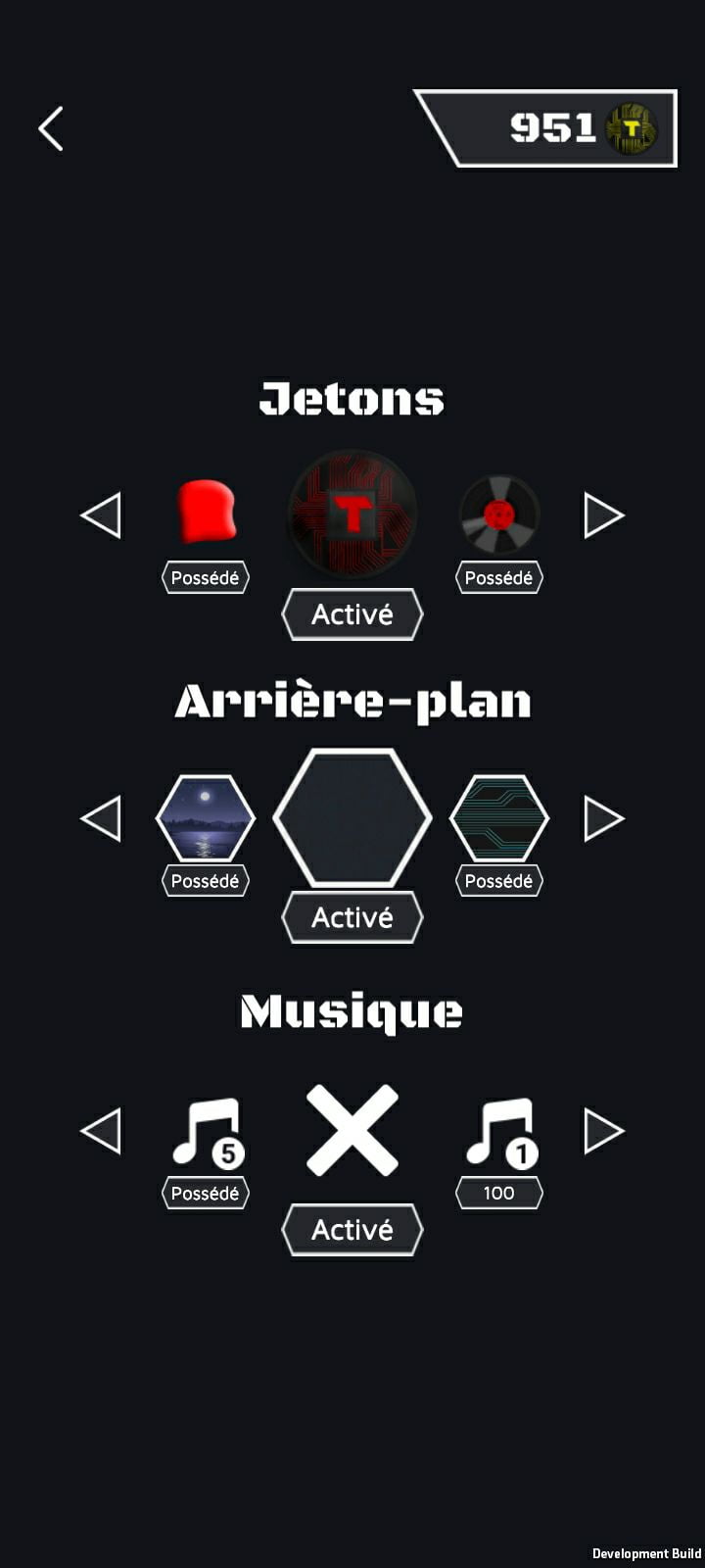 Pour les fans de personnalisation, le jeu possède 6 designs de jetons, 6 arrières-plans, et pour les mélomanes un lot de 5 musiques chacune allant avec un arrière-plan défini.